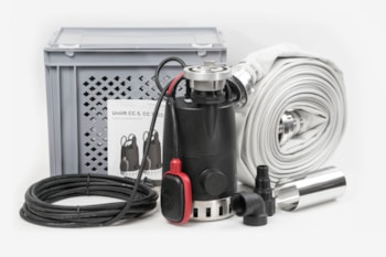 – Grundfos Unilift CC pumpe er en av få som kan suge vann ned til 3 mm. Den leveres med en solid slange og praktisk oppbevaringsboks som kan brukes som sil ved partikler i vannet, forklarer Berg.